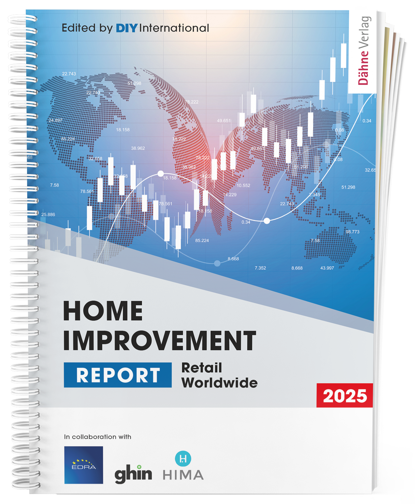 Der neue Home Improvement Report Retail Worldwide umfasst mehr als 340 Seiten und wurde nun das dritte Jahr in Folge in enger Zusammenarbeit zwischen den weltweiten Handels- (EDRA/GHIN) und Industrieverbänden (HIMA) und dem Dähne Verlag erarbeitet. Der Report 2025 basiert auf Zahlen zu 632 Home Improvement-Vertriebslinien aus mehr als 70 Ländern weltweit und bildet damit auf einzigartige Weise die Entwicklung der weltweiten Baumarktbranche ab.